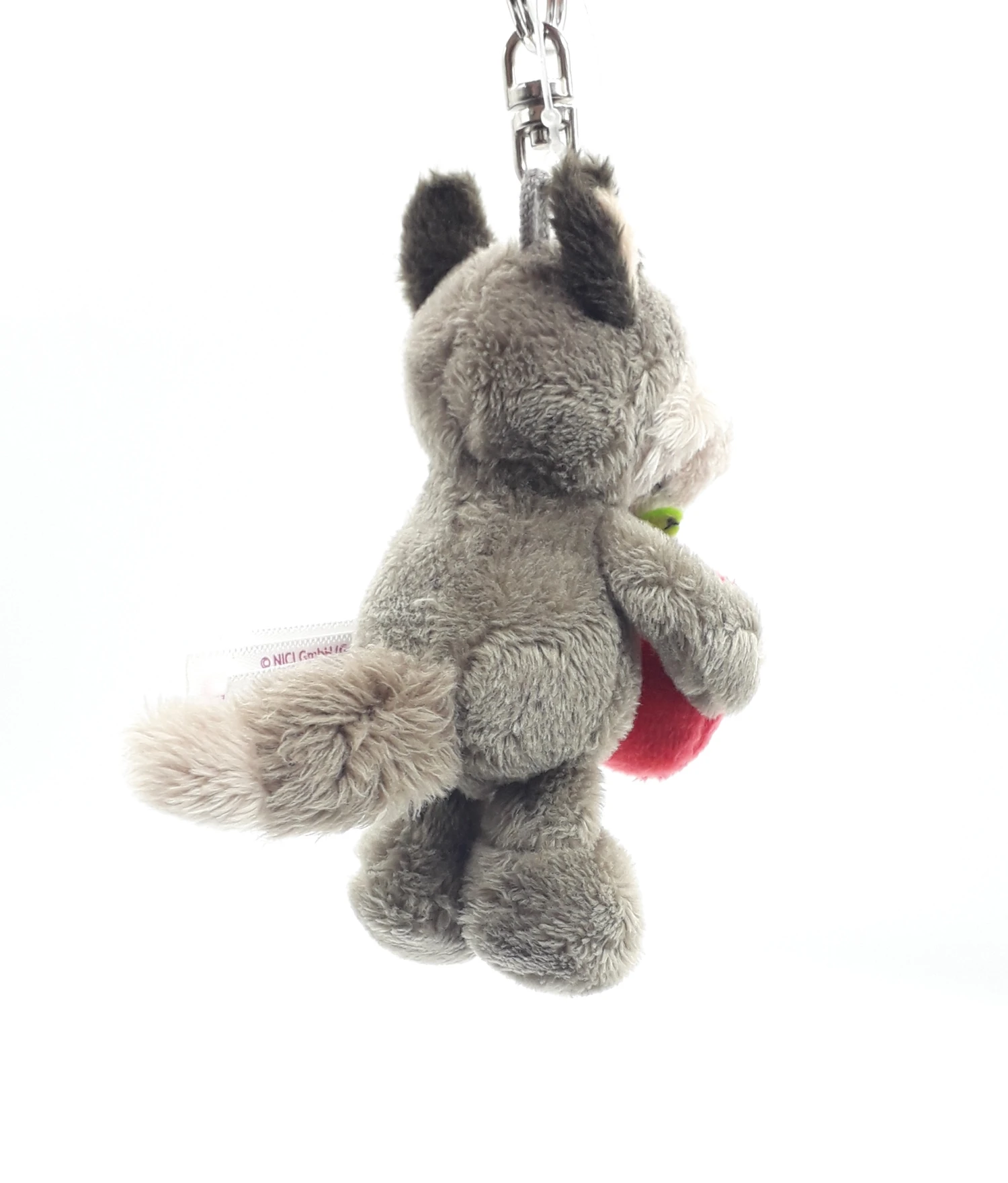 Mit Augen aus Kunststoff und angenähtem roten Apfel